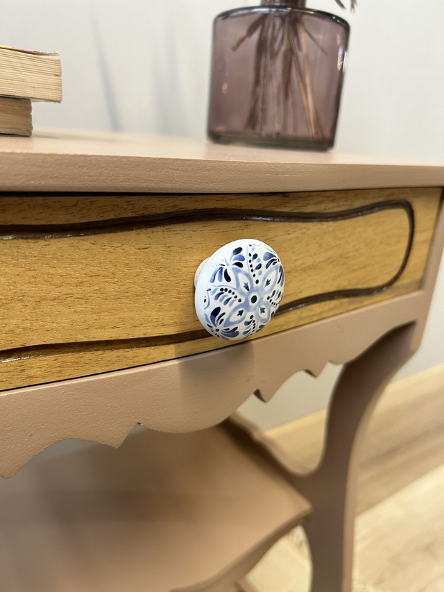 Ce charmant petit chevet et ses côtés arrondis ont été nettoyés, poncés, puis peints.