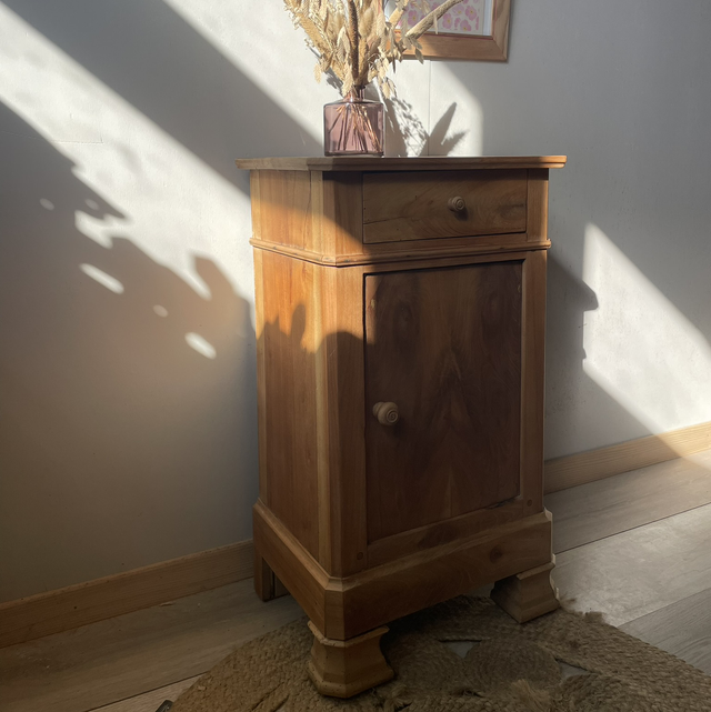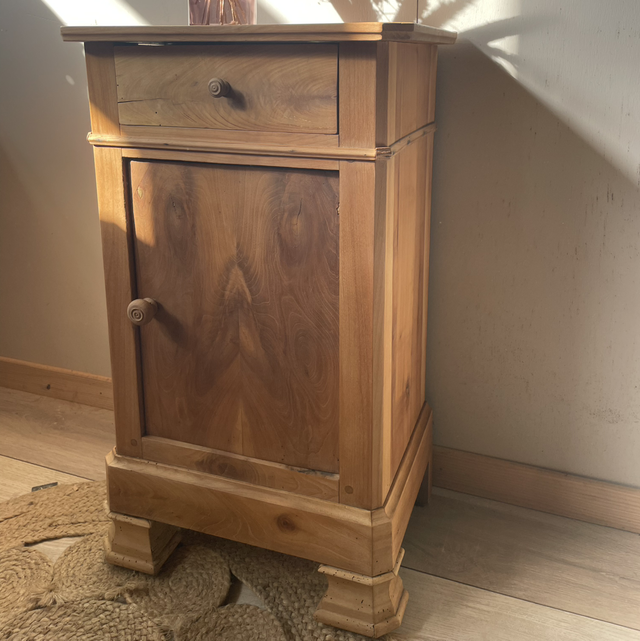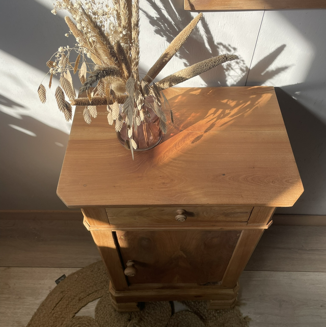 Après un décapage complet à l’aérogommage (technique de sablage), j’ai pu traiter le meuble contre les bêtes.