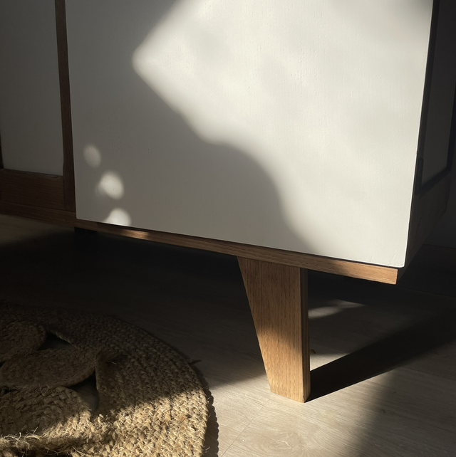 Un blanc cassé qui met en valeur le chêne et son veinage incroyable.