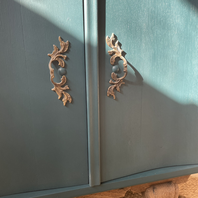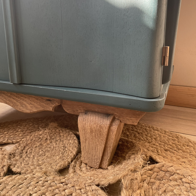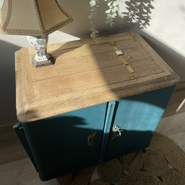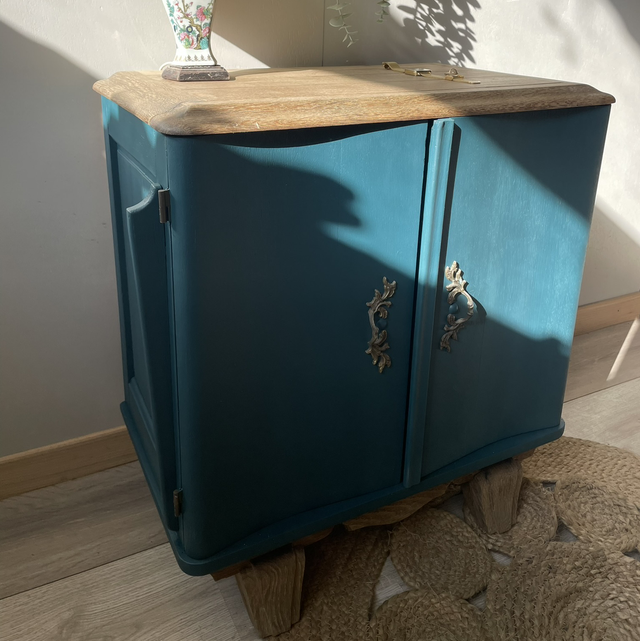 Après un traitement contre les bêtes, j’ai appliqué la peinture matte bleu pétrole de chez Liberon 🦋