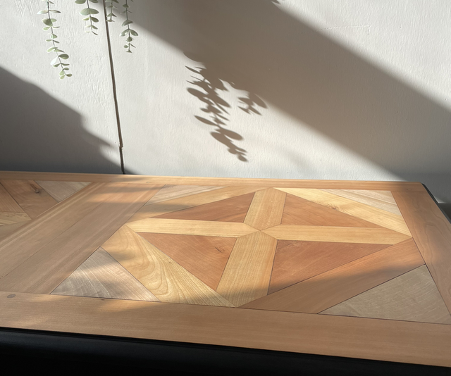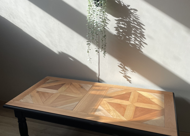 Le plateau a accueillit un vernis mat (3 couches) et les pieds un vernis satin (2 couches).